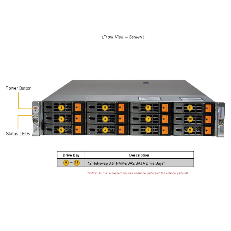 12個熱插拔2.5英寸NVMe硬盤位