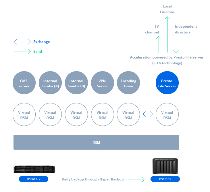 Presto File Server 提供的穩(wěn)定高速傳輸功能滿足我們的需求,它已經(jīng)取代了我們以前的傳輸工具。憑借其在 VDSM 部署和 Btrfs 文件系統(tǒng)支持方面的靈活性,現(xiàn)在我們能夠以高效存儲的方式將所有服務(wù)整合到一臺服務(wù)器中?;蛟S可以說,這是真正的一體化解決方案。